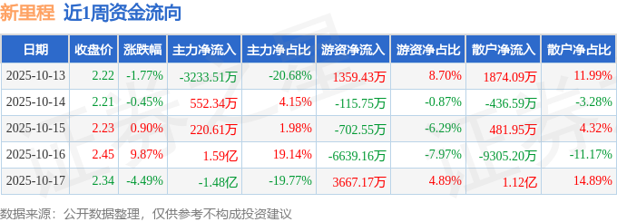资金流向数据方面,本周新里程主力资金合计净流出1360.32万元,游资资金合计净流出2430.86万元,散户资金合计净流入3791.18万元。本周资金流向一览见下表: