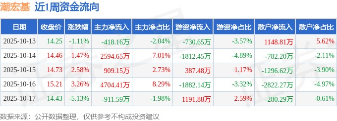 资金流向数据方面,本周潮宏基主力资金合计净流入6878.46万元,游资资金合计净流出2845.89万元,散户资金合计净流出4032.57万元。本周资金流向一览见下表: