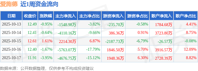 资金流向数据方面,本周爱施德主力资金合计净流出1.39亿元,游资资金合计净流入1757.79万元,散户资金合计净流入1.21亿元。本周资金流向一览见下表: