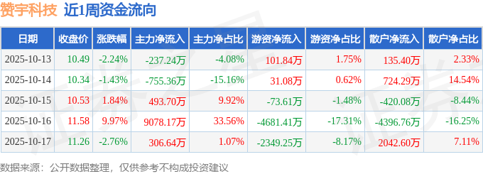 资金流向数据方面,本周赞宇科技主力资金合计净流入8885.9万元,游资资金合计净流出6971.35万元,散户资金合计净流出1914.55万元。本周资金流向一览见下表: