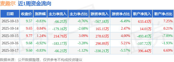资金流向数据方面,本周麦趣尔主力资金合计净流出280.02万元,游资资金合计净流出162.73万元,散户资金合计净流入442.75万元。本周资金流向一览见下表: