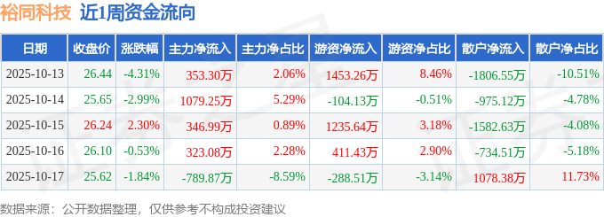 资金流向数据方面,本周裕同科技主力资金合计净流入1312.74万元,游资资金合计净流入2707.69万元,散户资金合计净流出4020.43万元。本周资金流向一览见下表: