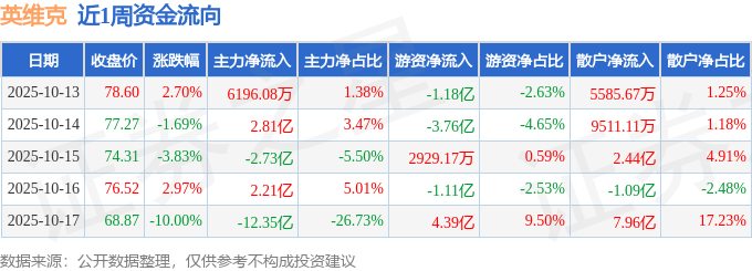 资金流向数据方面,本周英维克主力资金合计净流出9.44亿元,游资资金合计净流出1.37亿元,散户资金合计净流入10.82亿元。本周资金流向一览见下表: