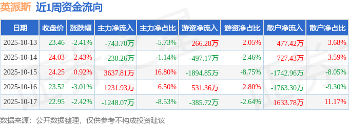 资金流向数据方面,本周英派斯主力资金合计净流入2647.71万元,游资资金合计净流出1980.1万元,散户资金合计净流出667.61万元。本周资金流向一览见下表: