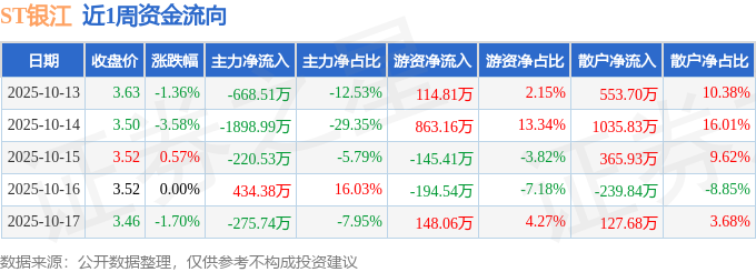 资金流向数据方面,本周ST银江主力资金合计净流出2629.39万元,游资资金合计净流入786.09万元,散户资金合计净流入1843.3万元。本周资金流向一览见下表: