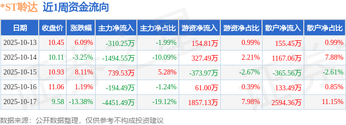资金流向数据方面,本周*ST聆达主力资金合计净流出5711.25万元,游资资金合计净流入2026.45万元,散户资金合计净流入3684.8万元。本周资金流向一览见下表: