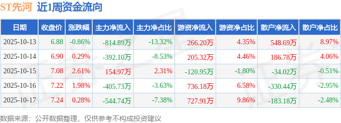 资金流向数据方面,本周ST先河主力资金合计净流出2002.49万元,游资资金合计净流入1814.67万元,散户资金合计净流入187.82万元。本周资金流向一览见下表:
