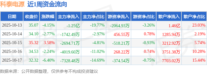 资金流向数据方面,本周科泰电源主力资金合计净流出2.83亿元,游资资金合计净流出2232.91万元,散户资金合计净流入3.06亿元。本周资金流向一览见下表: