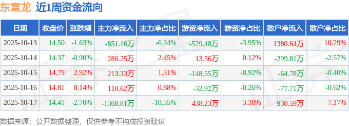 资金流向数据方面,本周东富龙主力资金合计净流出1609.76万元,游资资金合计净流出259.16万元,散户资金合计净流入1868.92万元。本周资金流向一览见下表: