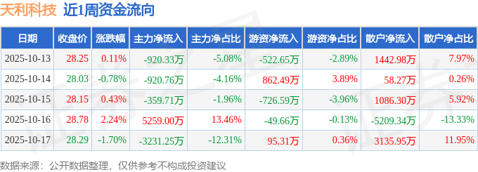 资金流向数据方面,本周天利科技主力资金合计净流出173.06万元,游资资金合计净流出341.11万元,散户资金合计净流入514.17万元。本周资金流向一览见下表: