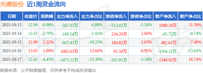 资金流向数据方面,本周光莆股份主力资金合计净流出1393.78万元,游资资金合计净流出280.25万元,散户资金合计净流入1674.03万元。本周资金流向一览见下表: