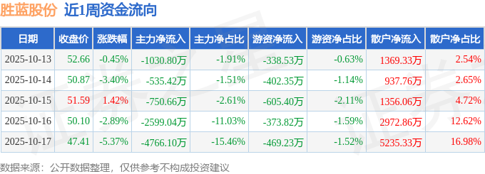 资金流向数据方面,本周胜蓝股份主力资金合计净流出9682.03万元,游资资金合计净流出2189.32万元,散户资金合计净流入1.19亿元。本周资金流向一览见下表: