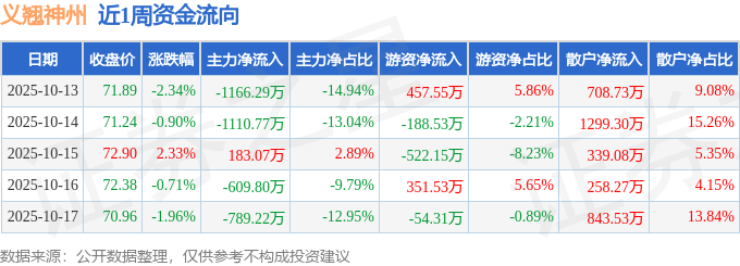 资金流向数据方面,本周义翘神州主力资金合计净流出3493.0万元,游资资金合计净流入44.09万元,散户资金合计净流入3448.91万元。本周资金流向一览见下表:
