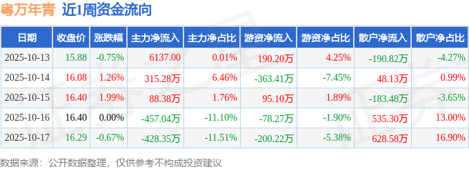 资金流向数据方面,本周粤万年青主力资金合计净流出481.12万元,游资资金合计净流出356.59万元,散户资金合计净流入837.71万元。本周资金流向一览见下表: