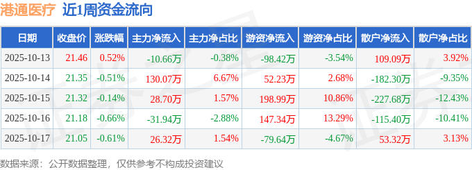 资金流向数据方面,本周港通医疗主力资金合计净流入142.48万元,游资资金合计净流入220.49万元,散户资金合计净流出362.97万元。本周资金流向一览见下表: