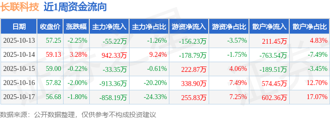 资金流向数据方面,本周长联科技主力资金合计净流出917.8万元,游资资金合计净流入482.58万元,散户资金合计净流入435.21万元。本周资金流向一览见下表: