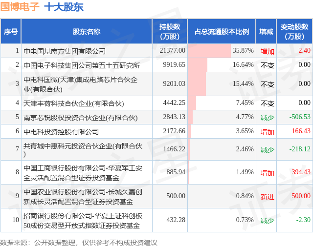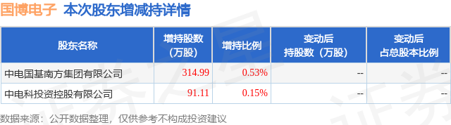 证券之星消息,10月19日国博电子发布公告《国博电子:关于控股股东及其一致行动人增持公司股份计划实施完毕暨增持结果公告》,其股东中电科投资控股有限公司、中电国基南方集团有限公司于2025年4月19日至2025年8月26日间合计增持406.1万股,占公司目前总股本的0.6814%,变动期间该股股价上涨28.43%,截止8月26日收盘报63.1元。
