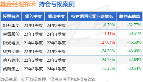 祁禾管理的易方达新丝路灵活配置混合基金在23年1季度买入旭升集团,在持有1年又2个季度后在24年3季度卖出。持有期间的估算收益率为-62.77%,持有期间旭升集团在2023年到2024年的年报营业总收入降幅为8.79%。
