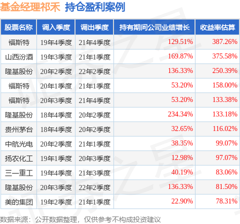 祁禾管理的易方达环保主题混合A基金在19年4季度买入福斯特,在持有2年又0个季度后在21年4季度卖出。持有期间的估算收益率为387.26%,持有期间福斯特在2019年到2021年的年报归属净利润增幅达129.51%。