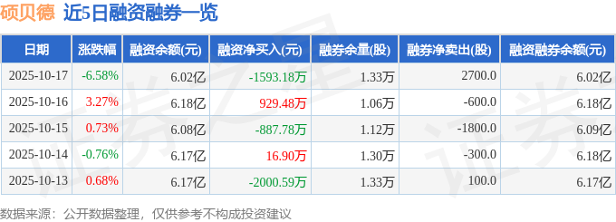 硕贝德融资融券信息显示,融资方面,当日融资买入5846.72万元,融资偿还7439.91万元,融资净偿还1593.18万元。融券方面,融券卖出2700.0股,融券偿还0.0股,融券余量1.33万股,融券余额30.22万元。融资融券余额6.02亿元。