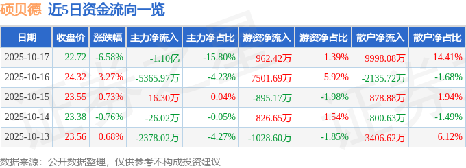 10月17日的资金流向数据方面,主力资金净流出1.1亿元,占总成交额15.8%,游资资金净流入962.42万元,占总成交额1.39%,散户资金净流入9998.08万元,占总成交额14.41%。