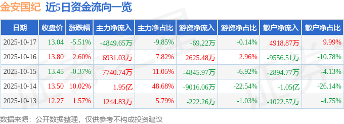 10月17日的资金流向数据方面,主力资金净流出4849.65万元,占总成交额9.85%,游资资金净流出69.22万元,占总成交额0.14%,散户资金净流入4918.87万元,占总成交额9.99%。