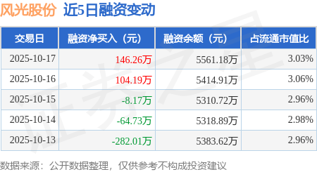 证券之星消息,10月17日,风光股份(301100)融资买入634.24万元,融资偿还487.98万元,融资净买入146.26万元,融资余额5561.18万元。