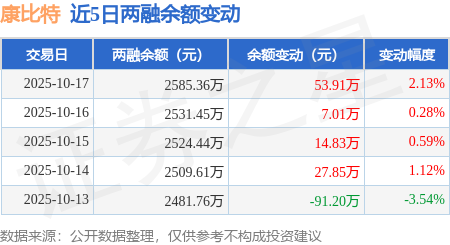 证券之星消息,10月17日,康比特(920429)融资买入140.54万元,融资偿还86.64万元,融资净买入53.91万元,融资余额2585.36万元,近3个交易日已连续净买入累计75.75万元。
