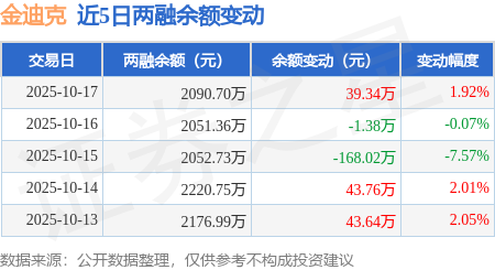 证券之星消息,10月17日,金迪克(688670)融资买入243.29万元,融资偿还203.96万元,融资净买入39.34万元,融资余额2090.7万元。