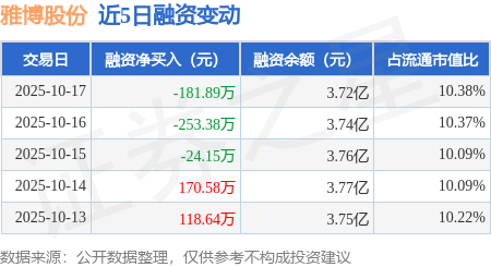 证券之星消息,10月17日,雅博股份(002323)融资买入336.7万元,融资偿还518.59万元,融资净卖出181.89万元,融资余额3.72亿元。