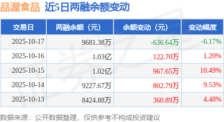证券之星消息,10月17日,品渥食品(300892)融资买入863.09万元,融资偿还1499.74万元,融资净卖出636.64万元,融资余额9681.38万元。