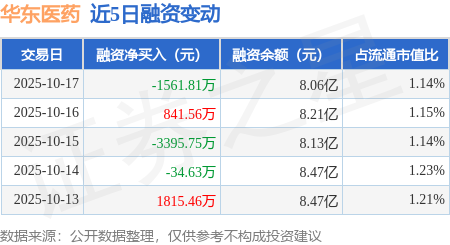 证券之星消息,10月17日,华东医药(000963)融资买入2492.2万元,融资偿还4054.01万元,融资净卖出1561.81万元,融资余额8.06亿元。