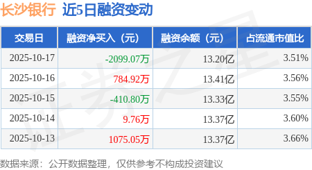 证券之星消息,10月17日,长沙银行(601577)融资买入1140.07万元,融资偿还3239.14万元,融资净卖出2099.07万元,融资余额13.2亿元,近20个交易日中有11个交易日出现融资净买入。