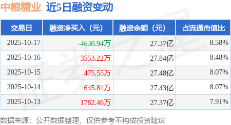 证券之星消息,10月17日,中粮糖业(600737)融资买入3532.37万元,融资偿还8163.31万元,融资净卖出4630.94万元,融资余额27.37亿元,近20个交易日中有11个交易日出现融资净买入。