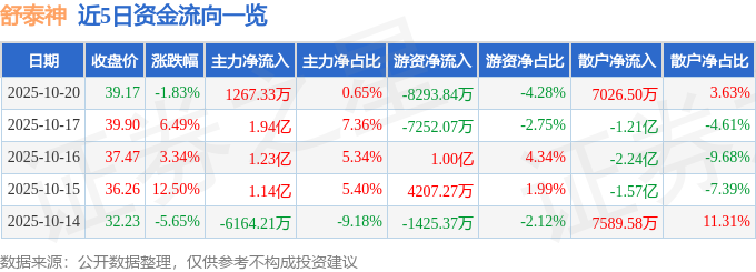 证券之星消息,截至2025年10月20日收盘,舒泰神(300204)报收于39.17元,下跌1.83%,换手率11.07%,成交量50.24万手,成交额19.36亿元。