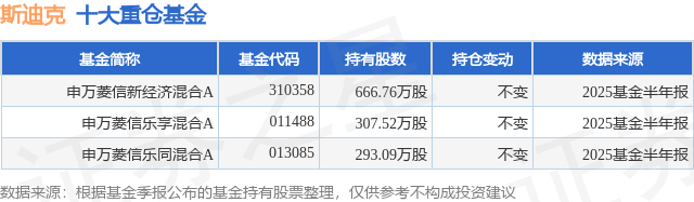 根据2025基金半年报公募基金重仓股数据,重仓该股的公募基金共3家,其中持有数量最多的公募基金为申万菱信基金的申万菱信新经济混合A。申万菱信新经济混合A目前规模为11.78亿元,最新净值1.1513(10月17日),较上一交易日下跌4.31%,近一年上涨28.46%。该公募基金现任基金经理为付娟。付娟在任的基金产品包括:申万菱信乐享混合A,管理时间为2021年3月24日至今,期间收益率为21.75%;申万菱信乐同混合A,管理时间为2021年9月6日至今,期间收益率为-19.4%;申万菱信乐融一年持有混合A,管理时间为2022年6月17日至今,期间收益率为42.25%。