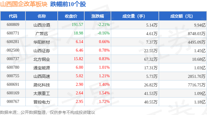从资金流向上来看,当日山西国企改革板块主力资金净流入4.85亿元,游资资金净流出2.33亿元,散户资金净流出2.52亿元。山西国企改革板块个股资金流向见下表: