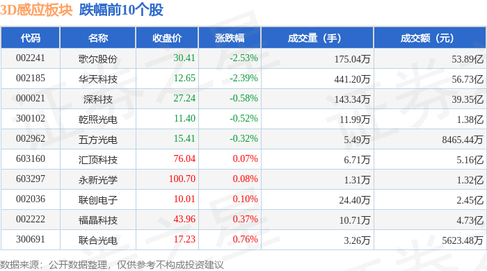 从资金流向上来看,当日3D感应板块主力资金净流出14.42亿元,游资资金净流出1.45亿元,散户资金净流入15.87亿元。3D感应板块个股资金流向见下表:
