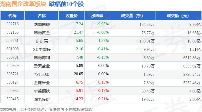 证券之星消息,10月20日湖南国企改革板块较上一交易日下跌0.11%,湖南白银领跌。当日上证指数报收于3863.89,上涨0.63%。深证成指报收于12813.21,上涨0.98%。湖南国企改革板块个股涨跌见下表: