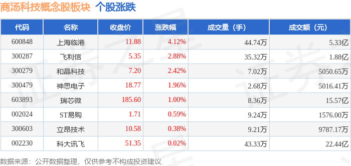证券之星消息,10月20日商汤科技概念股板块较上一交易日上涨0.95%,上海临港领涨。当日上证指数报收于3863.89,上涨0.63%。深证成指报收于12813.21,上涨0.98%。商汤科技概念股板块个股涨跌见下表: