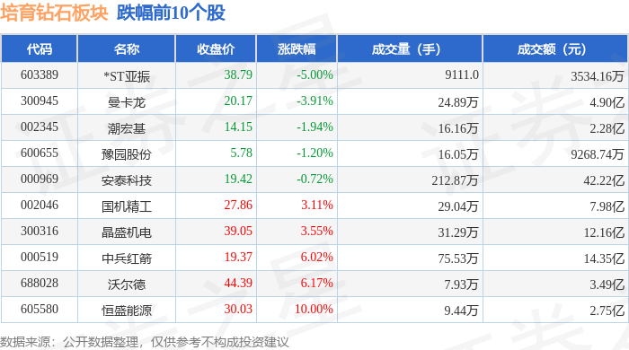 从资金流向上来看,当日培育钻石板块主力资金净流入6.75亿元,游资资金净流出4.13亿元,散户资金净流出2.62亿元。培育钻石板块个股资金流向见下表:
