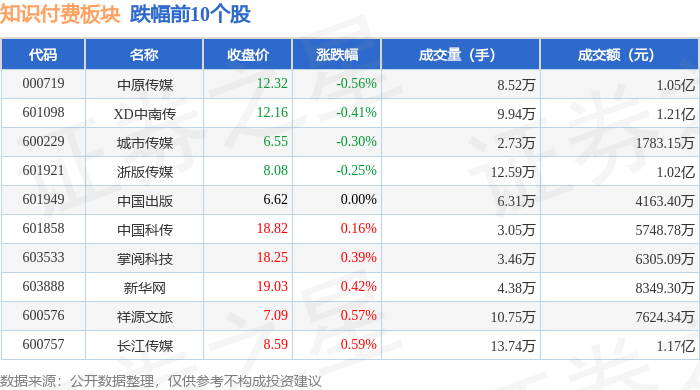 证券之星消息,10月20日知识付费板块较上一交易日上涨0.9%,南方传媒领涨。当日上证指数报收于3863.89,上涨0.63%。深证成指报收于12813.21,上涨0.98%。知识付费板块个股涨跌见下表: