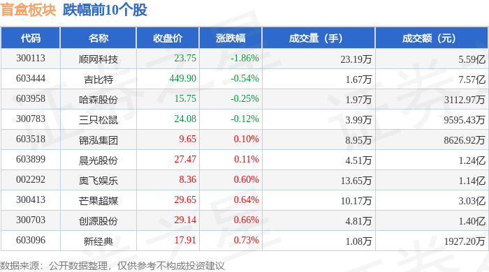 从资金流向上来看,当日盲盒板块主力资金净流出9669.9万元,游资资金净流出5698.21万元,散户资金净流入1.54亿元。盲盒板块个股资金流向见下表:
