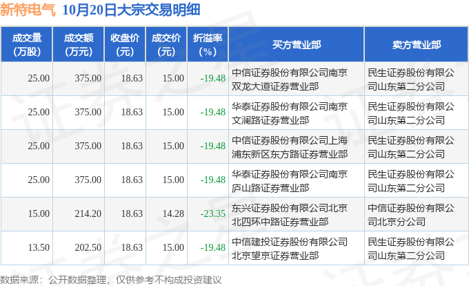 证券之星消息,10月20日新特电气发生大宗交易,交易数据如下: