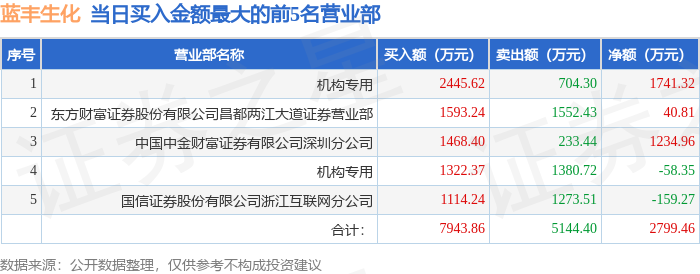 证券之星消息,沪深交易所2025年10月20日公布的交易公开信息显示,蓝丰生化(002513)因日换手率达到20%的前5只证券登上龙虎榜。此次是近5个交易日内第5次上榜。