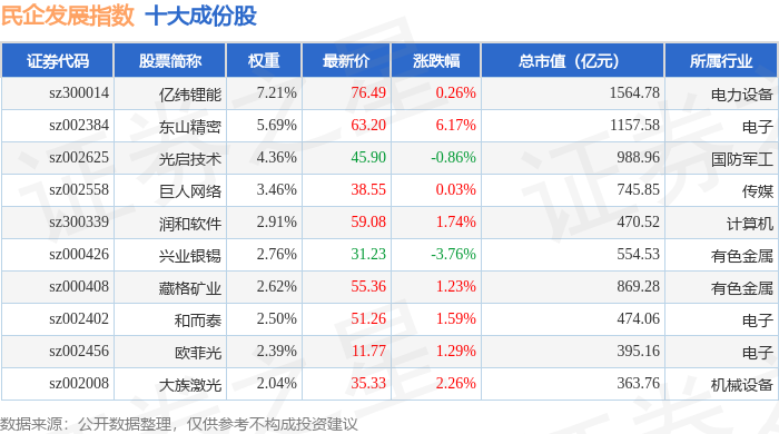 资金流向方面,民企发展(399292)指数成份股当日主力资金净流出合计26.4亿元,游资资金净流入合计1.22亿元,散户资金净流入合计25.18亿元。成份股资金流向详情见下表: