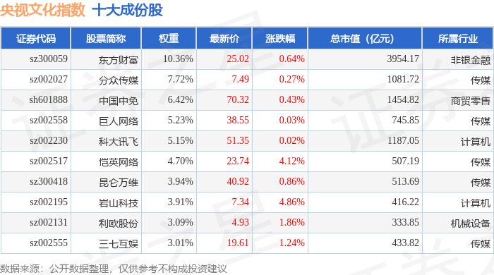资金流向方面,央视文化(399557)指数成份股当日主力资金净流出合计2.44亿元,游资资金净流出合计2.77亿元,散户资金净流入合计5.21亿元。成份股资金流向详情见下表:
