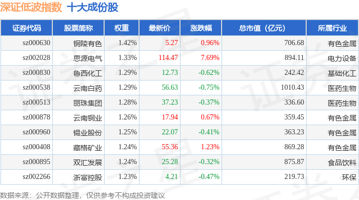 深证低波(399661)指数十大成份股详情如下: