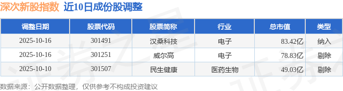 近10日内深次新股(399678)指数成份股做了调整,新纳入了1只股票,剔除了2只股票。