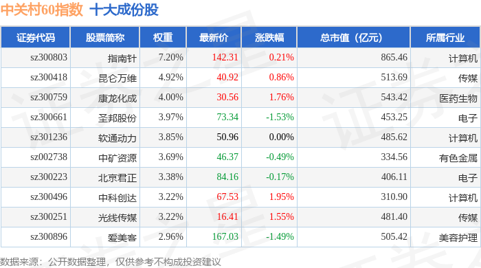 资金流向方面,中关村60(399697)指数成份股当日主力资金净流出合计9.2亿元,游资资金净流出合计4701.3万元,散户资金净流入合计9.67亿元。成份股资金流向详情见下表: